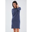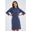 Peraluna Kayık Yaka Sade Yazlık Kadın Triko Elbise Gri- Mavi