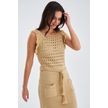 Peraluna Mıyokı Dress %100 Pamuk Diz Hizası Yazlık Kadın Triko El Bej
