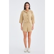Peraluna Mujo Cardıgan & Shorts %100 Pamuk Kadın Triko Şort Takım Bej