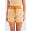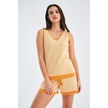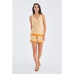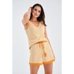 Peraluna Paru Top & Shorts Pamuklu Yazlık Kadın Triko Şort Takım Bej-Turuncu Bej - Turuncu
