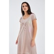 Peraluna Yazlık Boncuk Işlemeli Ince Elbise Bej Bej