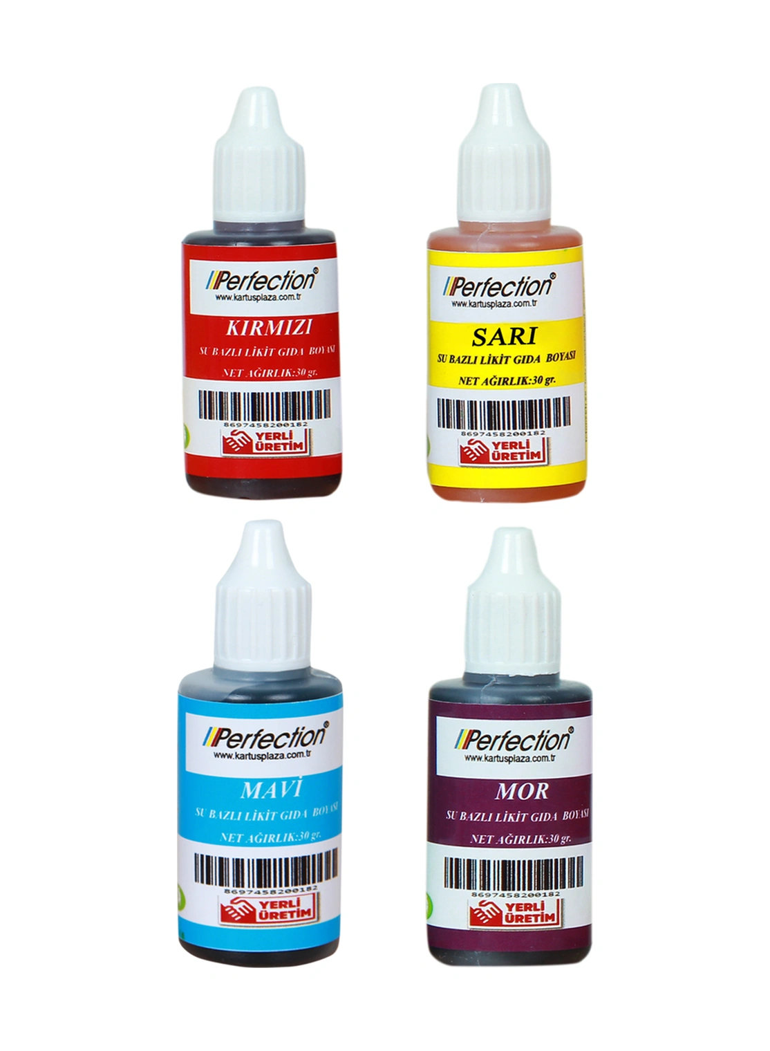 Perfection Chef 4'lü Sıvı Su Bazlı Likit Gıda Boyası Sarı Kırmızı Mavi Mor 4 X 30 Gr .
