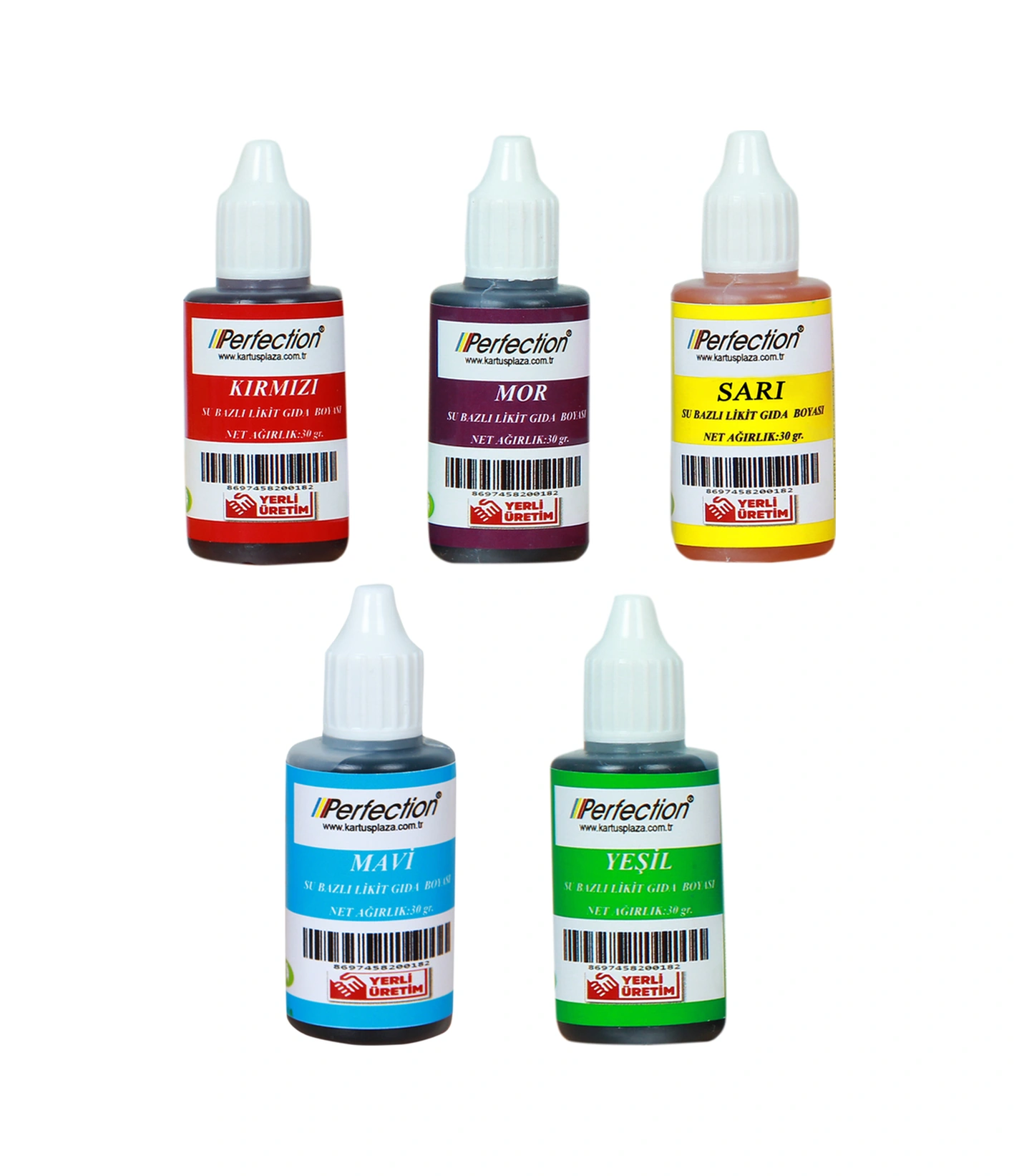 Perfection Chef 5'li Sıvı Su Bazlı Likit Gıda Boyası Mor Sarı Kırmızı Mavi Yeşil 5 X 30 Gr .