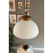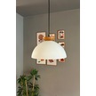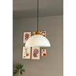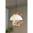 Perry Beyaz Cam Tekli Avize Ahşap Tabak Başlık Retro Sarkıt Lamba Restoran Salon Aydınlatma Beyaz