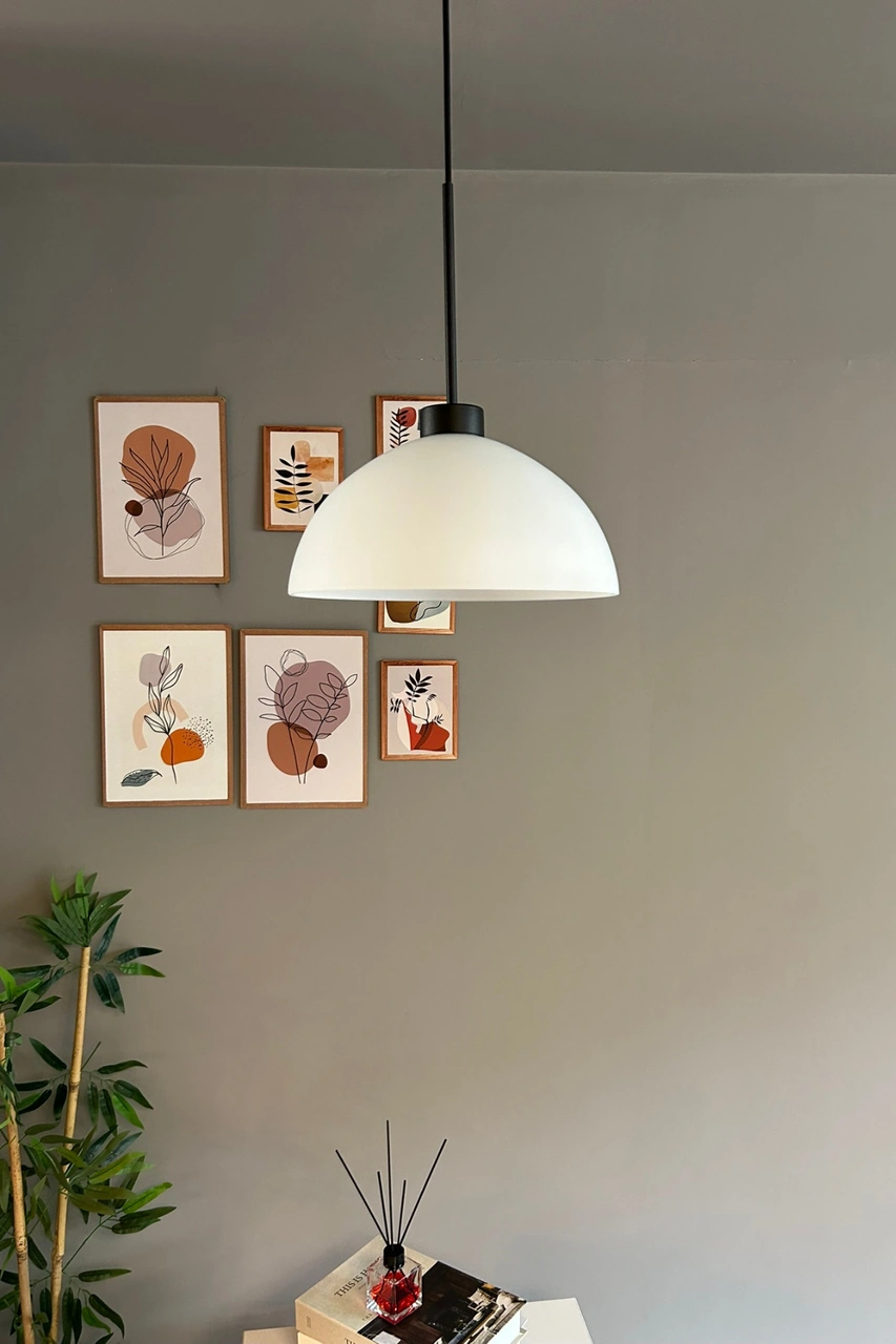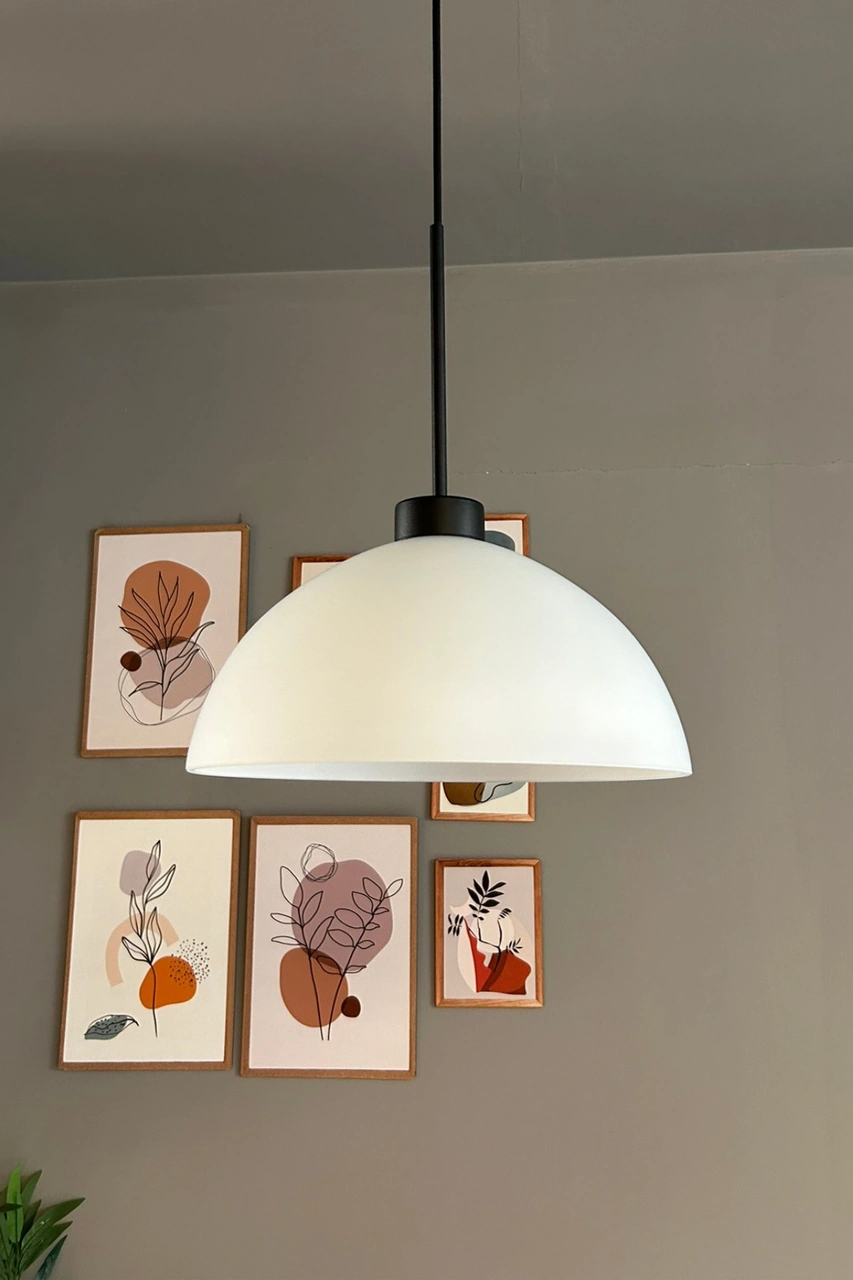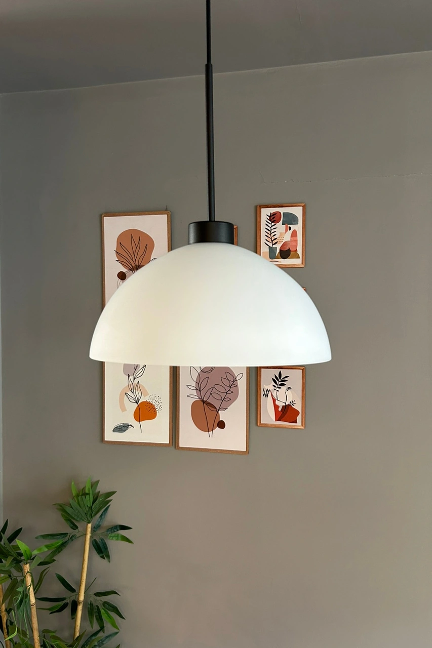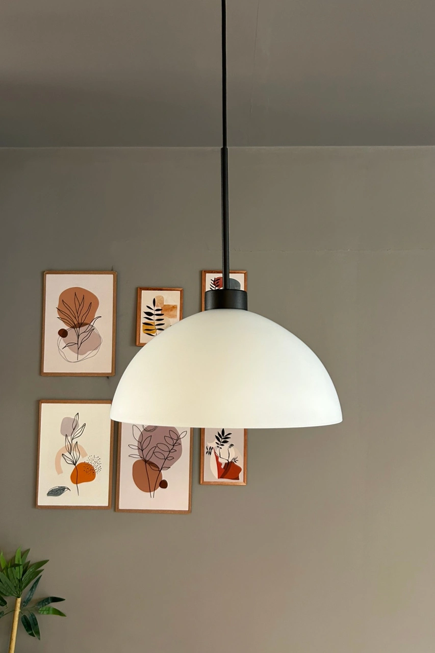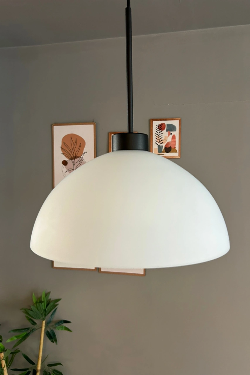 Perry Beyaz Cam Tekli Avize İnce Siyah Başlık Retro Sarkıt Lamba Restoran Salon Aydınlatma Bal