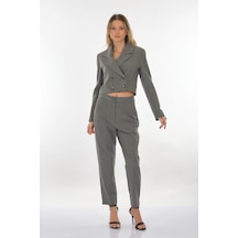 Perspective Kruvaze Yaka Çizgili Gri-turuncu Kadın Ceket 24061168 001