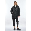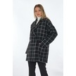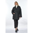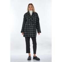 Perspective Kruvaze Yaka Ekose Desenli Siyah-Beyaz Kadın Kaban 24250702 001