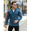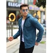 Petrol Renk Kapüşonlu Kot Ceket-1449 Petrol