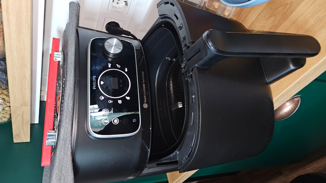 daha önce de airfryer kullandim.ama bu model yapilabilecek en iyi airfryer olmuş sanirim. hd9875/90 modeli. cok iyi tasarlanmış. teknik acidan yeterli. rezidans gizli. pervanelerin onunde koruma teli var. temizligi de sorun olmayacak gibi duruyor. hd9880 modelinden farklari; ekran ve kullanim tuşlarinda farkliliklar var,termometre 9880de var 9875 de sadece termometre kullanimina uygun ama yok. 9880de 50ye yakin program var 9875de 8 tane var. 2sinde de manuel sicaklik,zaman ve fan ayari seciliyor