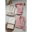 Pierre Cardin 6 Parça Jakarlı Aile Bornoz Seti-wave Soft G.kurusu Gül Kurusu - Krem