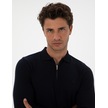 Monox Erkek Yarım Fermuarlı Polo Yaka Triko Kazak Siyah