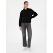 Siyah Fermuarlı Dikyaka Sweatshirt- Minik Kedi - Kışık Şardonlu Kumaş Siyah
