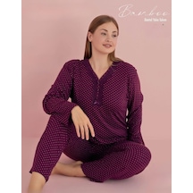 Pijamerry Kadın Büyük Beden Dantel Yaka Bambu Uzun Kol Pijama Takımı 5067 - 1 Adet 001