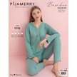 Pijamerry Kadın Dantel Yaka Bambu Uzun Kol Pijama Takımı 5208 - 1 Adet Yeşil