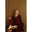 Pijamoni Kadın Süet Önden Düğmeli Likralı Pijama Takımı 3k - 1 Adet Kırmızı