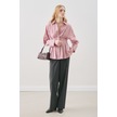 Pile Detaylı Gömlek Pembe Çizgili Pembe Çizgili