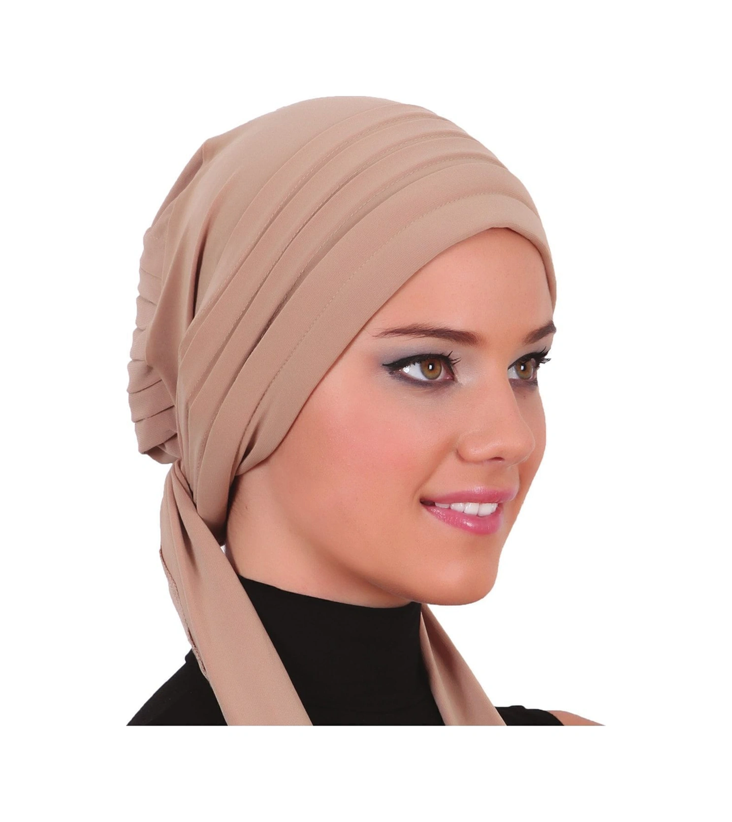 Pileli Bağlama Bej Hazır Türban Tesettür Bone Bej
