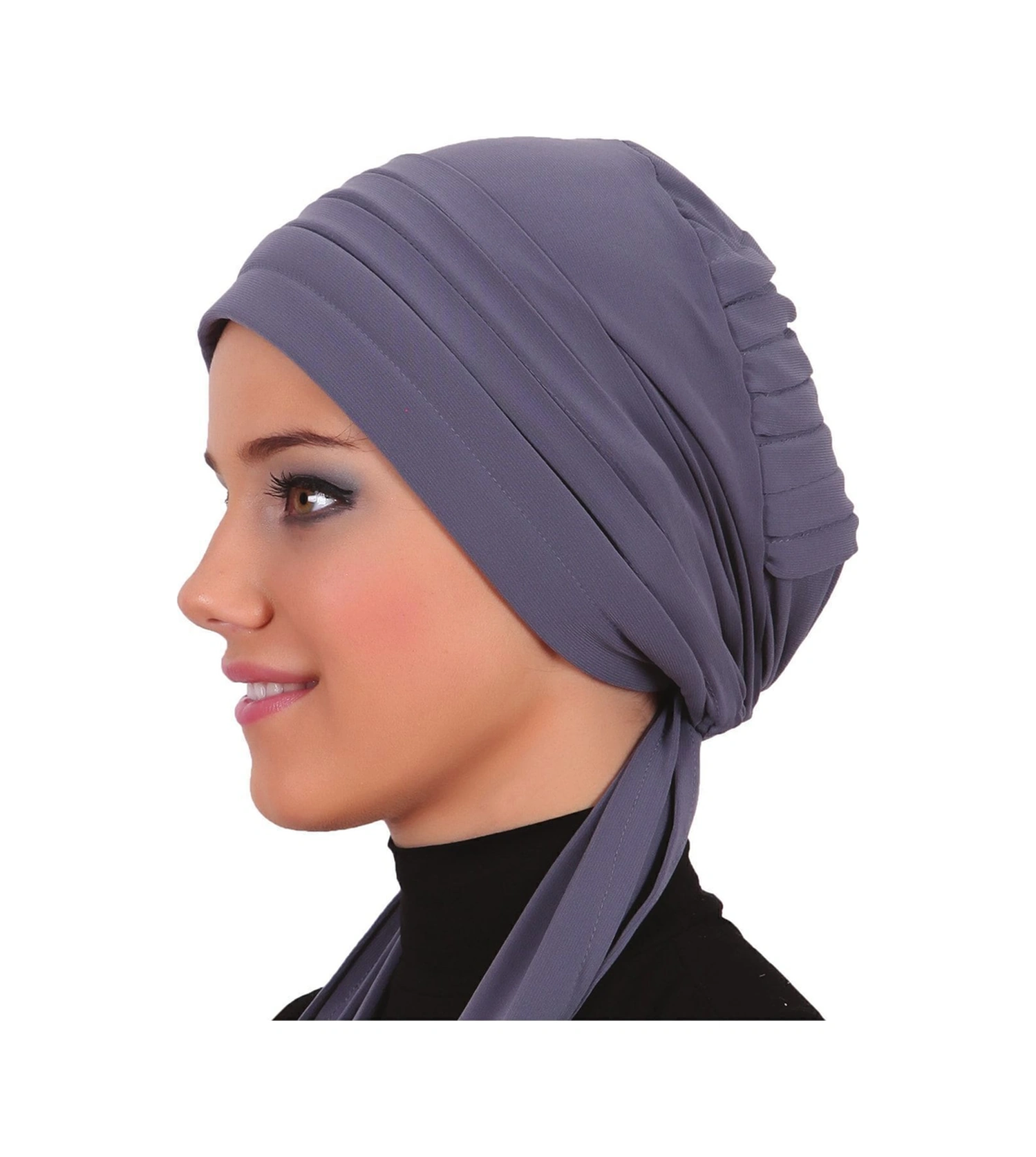 Pileli Bağlama Koyu Gri Hazır Türban Tesettür Bone Koyu Gri