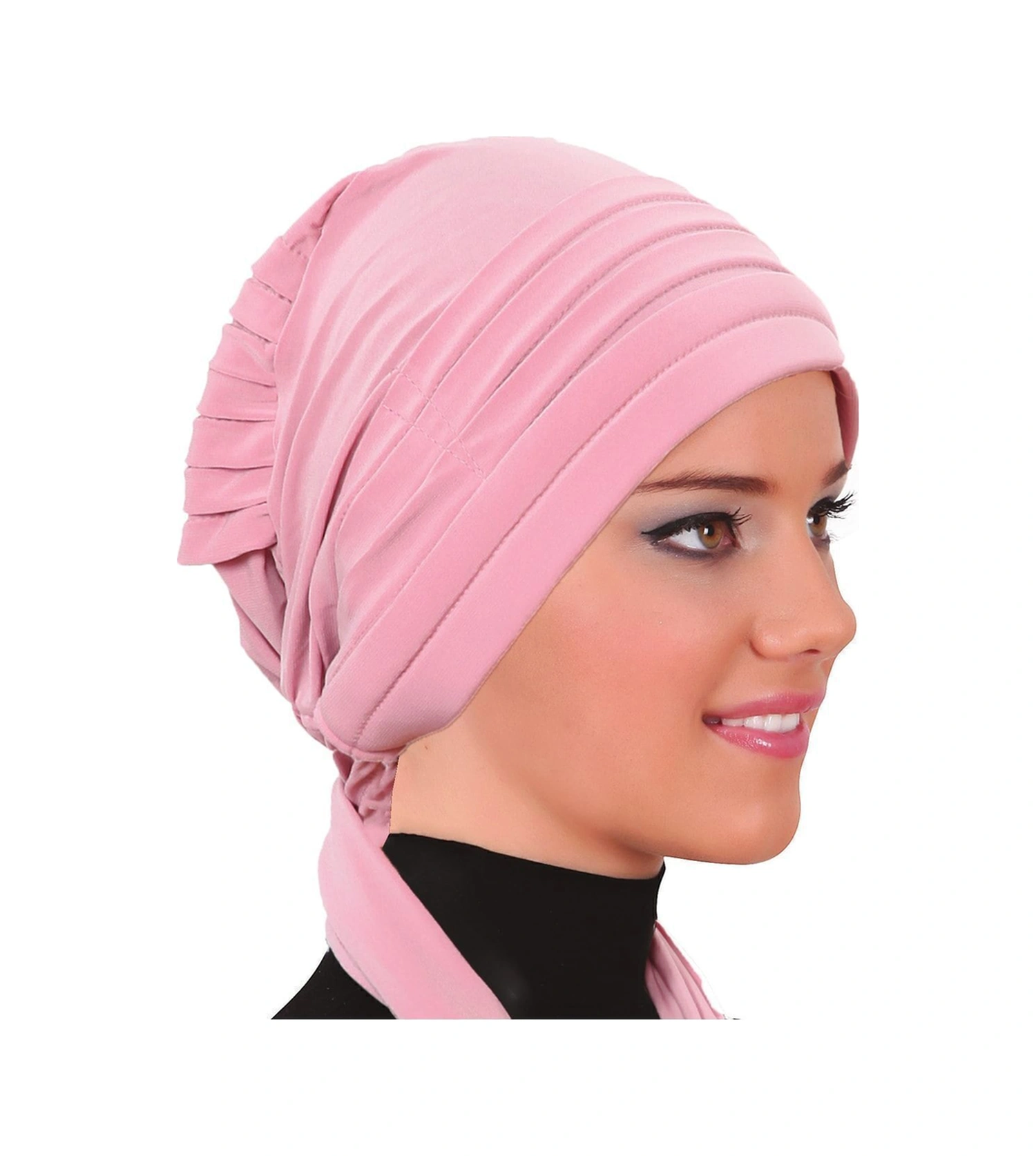 Pileli Bağlama Pudra Hazır Türban Tesettür Bone Pudra