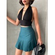 Pileli Düğmeli Etek Yeşil S24811 Yeşil