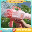 Pilli Roket Atar Köpük Tabancası 32 Delikli Bazooka Bubble Machine - Pembe Pembe