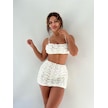 Pink Life Beyaz Üç Boyutlu Çiçek Desenli Fermuar Detaylı Mini Ikili Takım Elbise-Beyaz