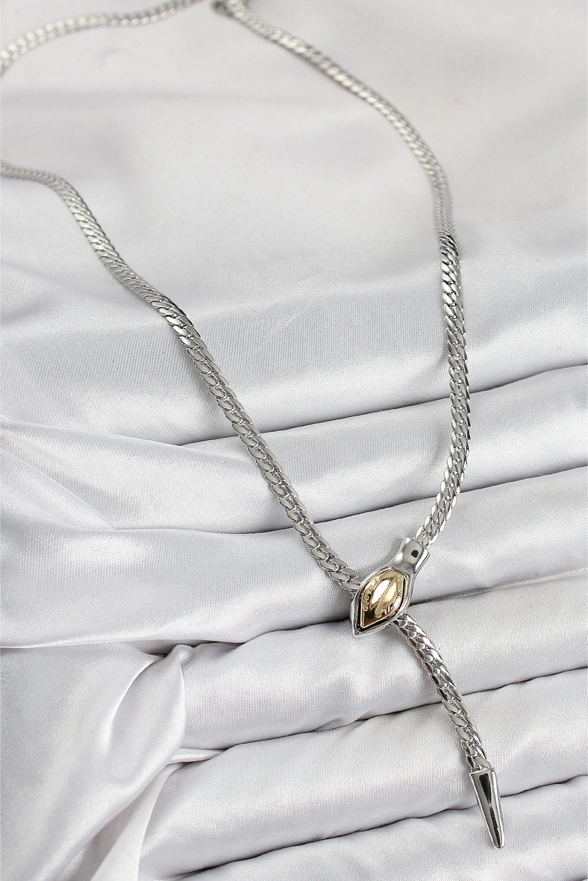 Pirinç Asansörlü Yılan Model Gümüş Renk Kadın Kolye Vice-5353 Diğer