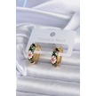 Pirinç Gold Renk Siyah Çiçek İşleme Kadın Küpe Çok Renkli