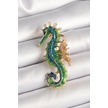 Pirinç Gold Renk Yeşil Deniz Atı Model Zirkon Taş Detay Kadın Br Renkli