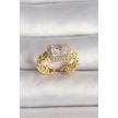 Pirinç Gold Renk Zincir Model Kare Zirkon Taşlı Kadın Yüzük Çok Renkli