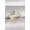 Pirinç Gold Renk Zirkon Taş Detaylı Beyaz Mineli Kelebek Model İnci Detay Ayarlanabilir Yüzük - Tj-byk3523 Çok Renkli