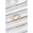 Pirinç Gold Renk Zirkon Taşlı Mavi Çiçekli Kadın Yüzük Renkli