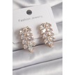Pirinç Gold Renk Zirkon Taşlı Yaprak Model Kadın Küpe Çok Renkli