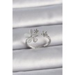 Pirinç Gümüş Renk Ayarlanabilir Zirkon Taşlı Beyaz Mineli Yaprak Model Kadın Yüzük Çok Renkli