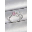 Pirinç Gümüş Renk Beyaz Mineli Pembe Zirkon Taşlı Çiçek Model Kadın Yüzük - Tj-byk3708