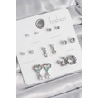 Pirinç Gümüş Renk Zirkon Taşlı Sallantılı Kalp Model Çiçek Detay 7 Çift Kadın Küpe Seti Çok Renkli
