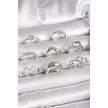 Pirinç Gümüş Renk Zirkon Taşlı Zincir Model Detay Kadın Yüzük Kombini - Tj-byk3647 Çok Renkli