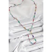 Pirinç Renkli Zirkon Taşlı Dikdörtgen Model Gümüş Renk Kadın Y Kolye Çok Renkli