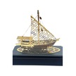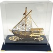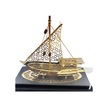 Pirinç Yelkenli Gemi Altın Kaplama Katar Dhow Teknesi Deri Kutulu 23cm No.2