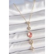 Pirinç Zincir Pembe Gold Renk Zirkon Taşlı Y Kolye Çok Renkli