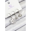 Pirinç Zirkon Taşlı 3'lü Çiçek Ve İstiridye Model Gümüş Renk Kadın Küpe Çok Renkli