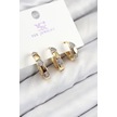 Pirinç Zirkon Taşlı 3'lü Halka Model Gold Ve Gümüş Renk Kadın Küpe Çok Renkli