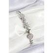 Pirinç Zirkon Taşlı Kalp Detaylı Çiçek Model Gümüş Renk Kadın Bileklik - Tj-bb7528 Gümüş