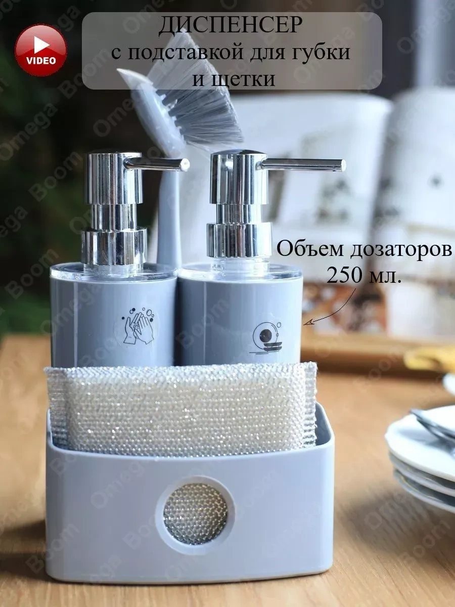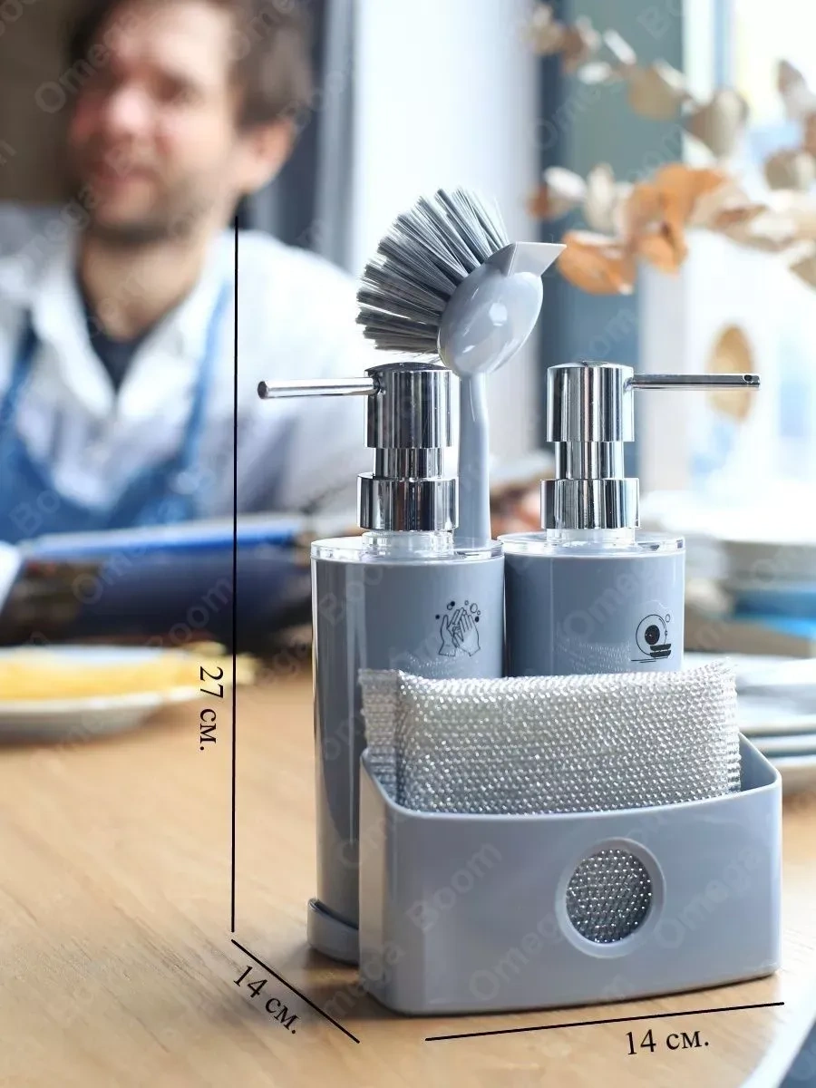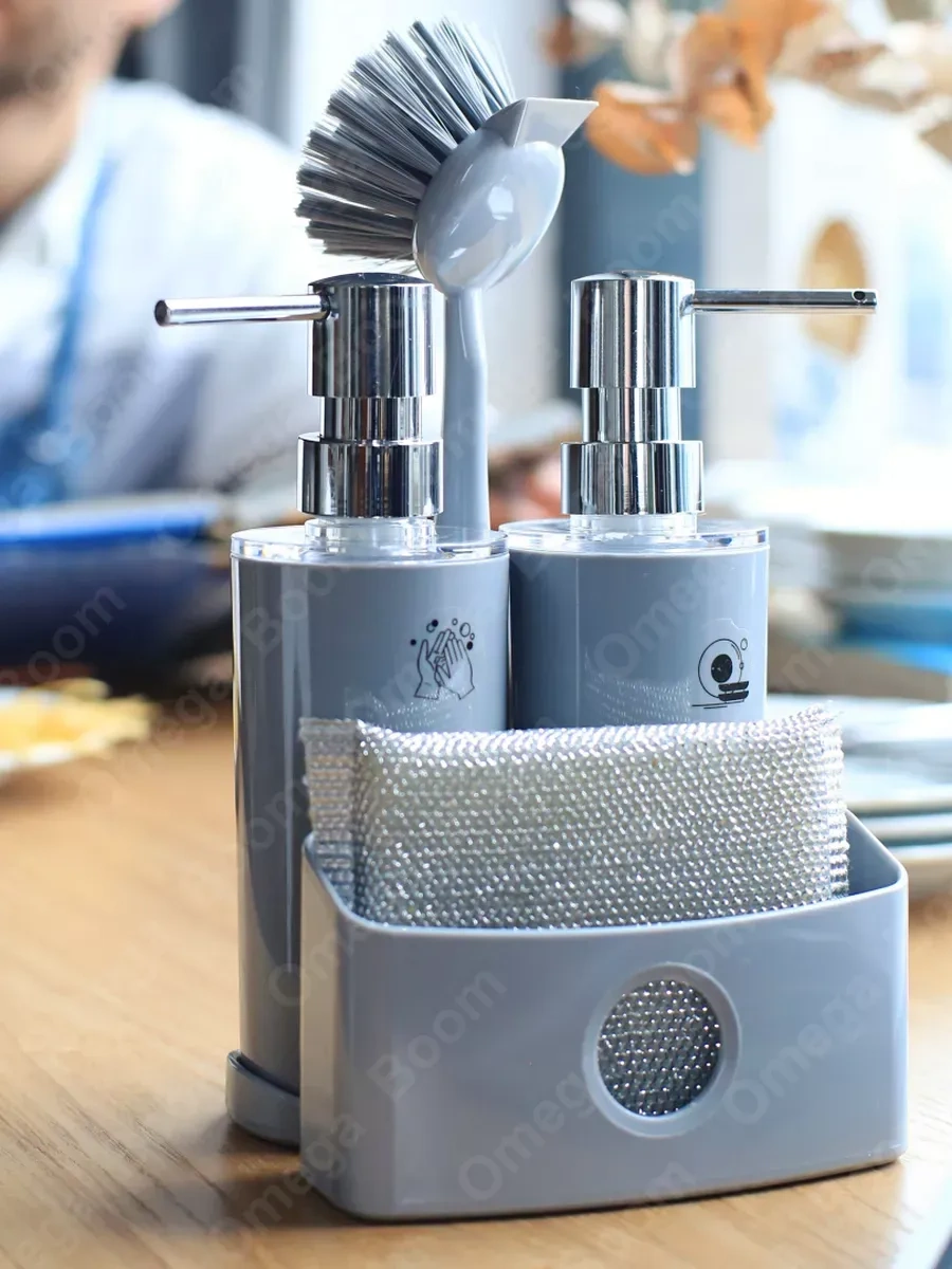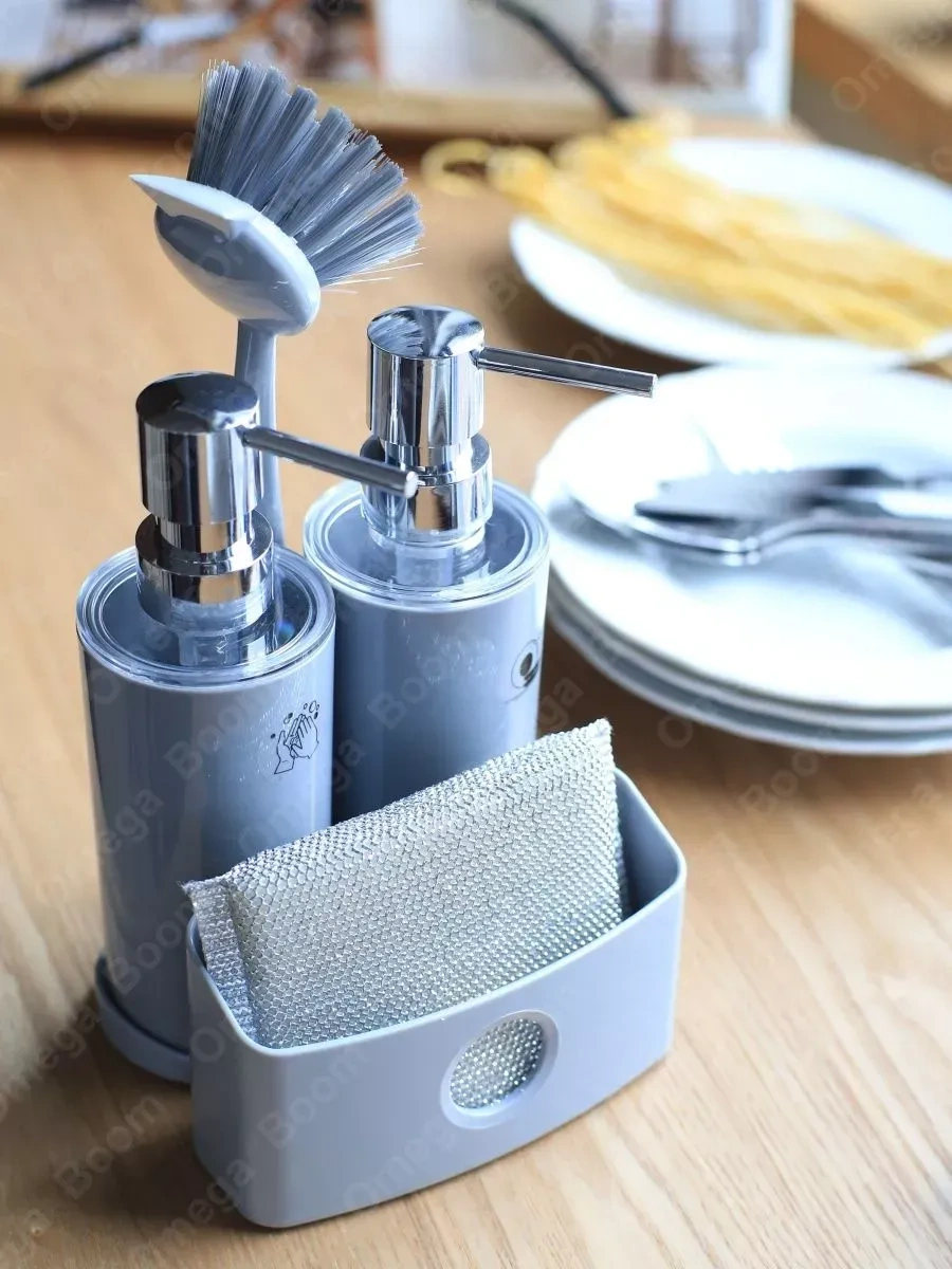Pıta Mutfak İçin Sabun Ve Deterjan Dispanseri Seti, Süngerli 389464532 Gri