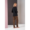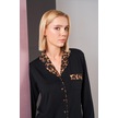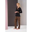 Pjs 26006 Kadın Patlı Boydan Düğmeli Leopar Desenli Uzun Kollu Pijama Takım Siyah
