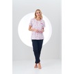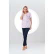 Pjs Kadın Desenli Önden Düğmeli Kısa Kollu Pijama Takım Beyaz