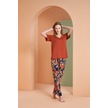 Pjs Kadın Kiremit Desenli V Yaka Kısa Kollu Pijama Takım Kremit