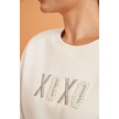 Pjs Xoxo Kadın Baskılı Uzun Kollu Sweatshirt Çizgili Eşofman Takım Ekru