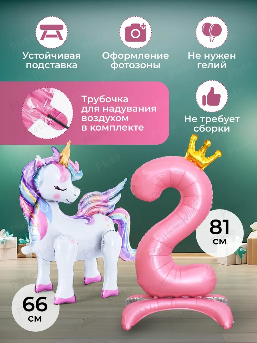 Plato Kız İçin Tek Boynuzlu At Rakam 2 Balon 282777847 Beyaz