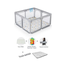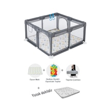 Playard Güvenli Bebek Ve Çocuk Oyun Alanı Oyun Parkı 120x120 Oyun Matı Topları Ve Yataklı Gri